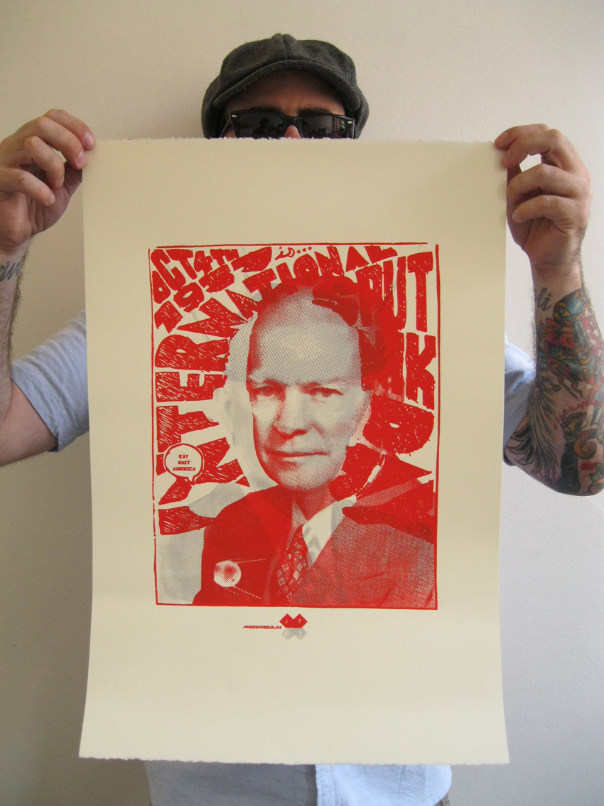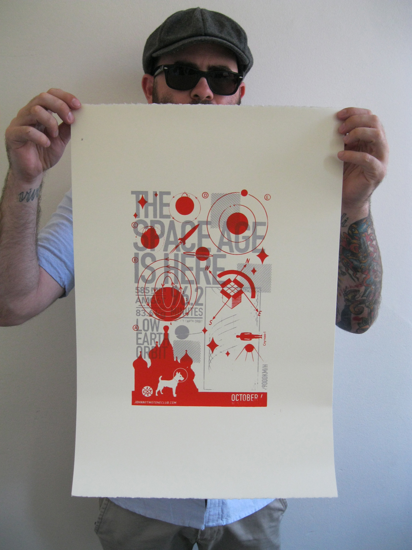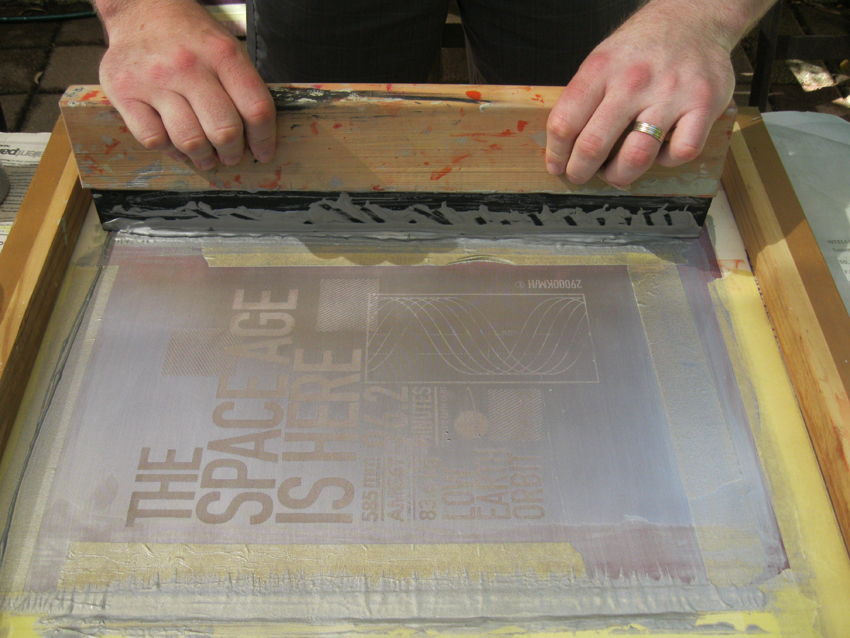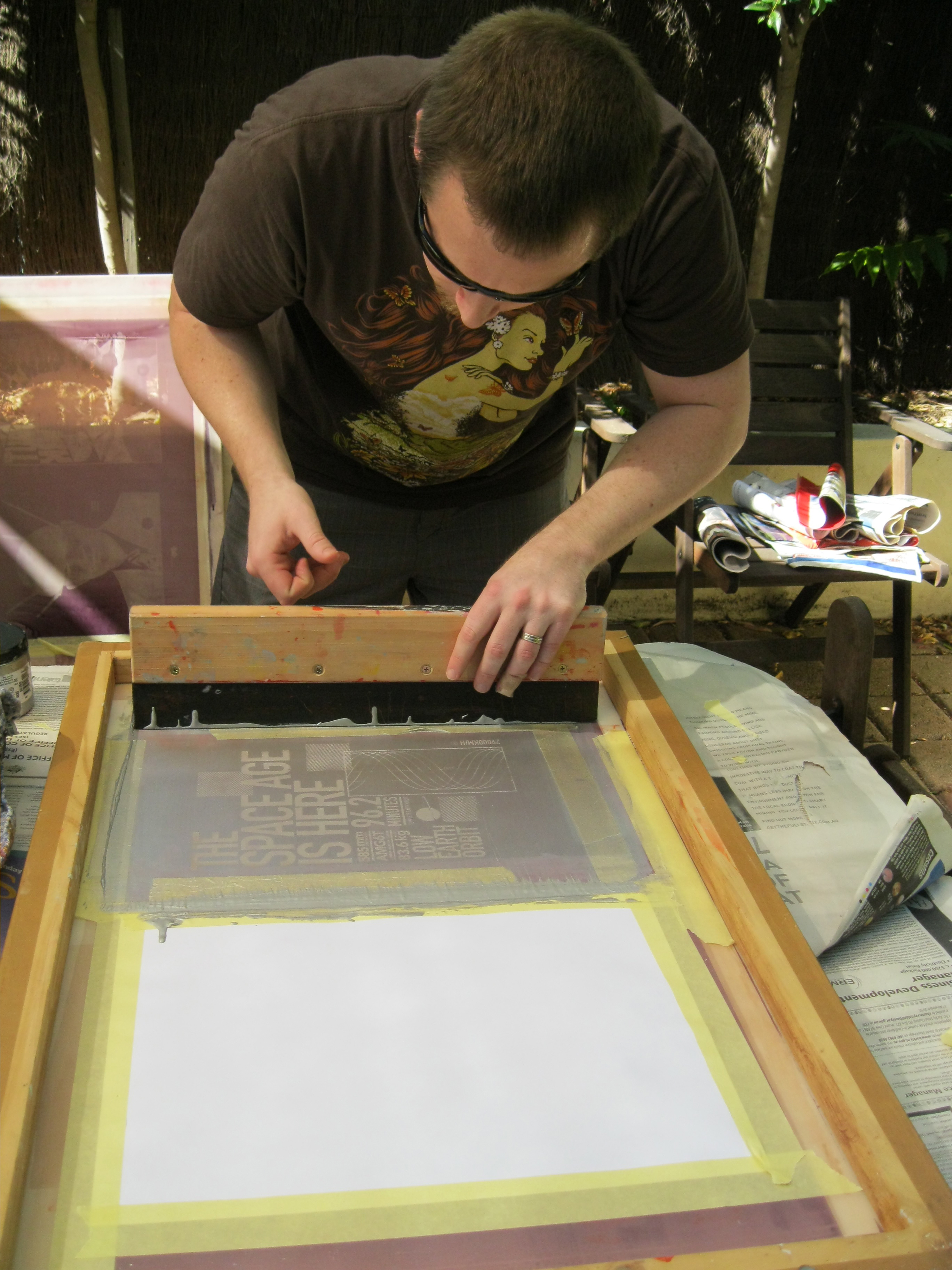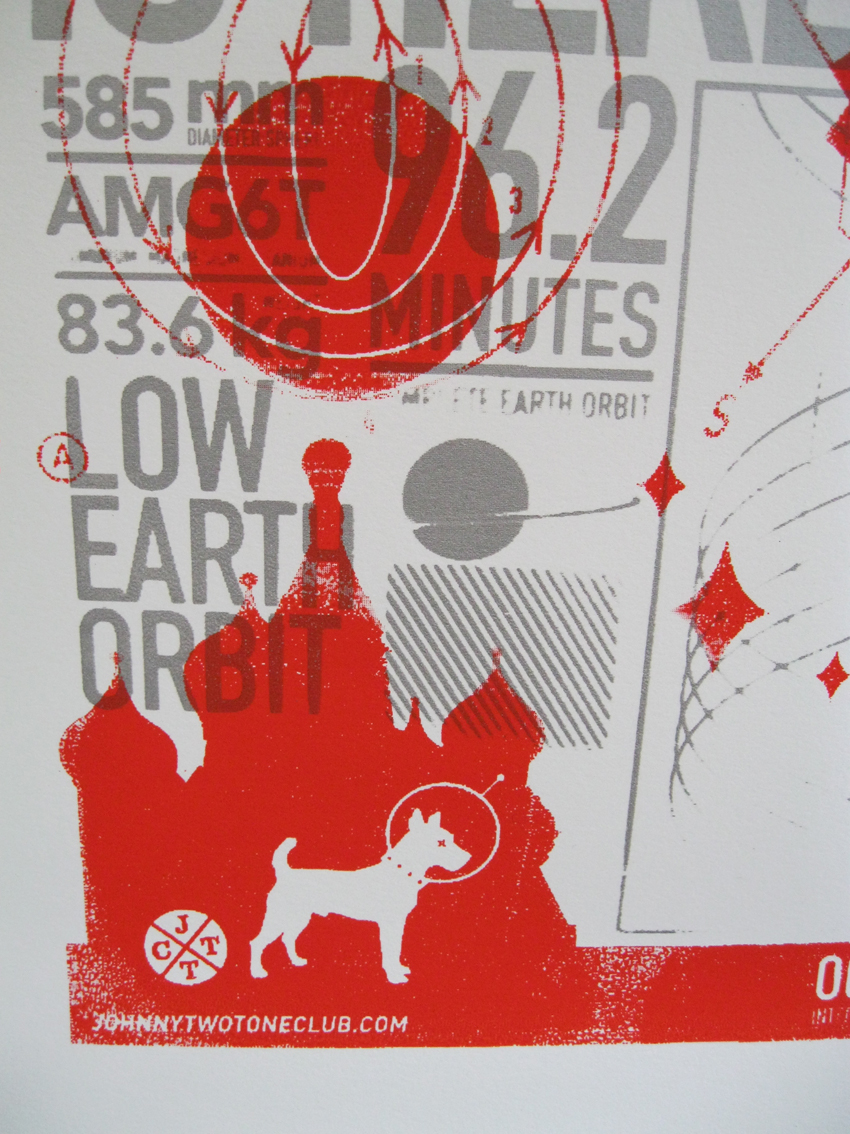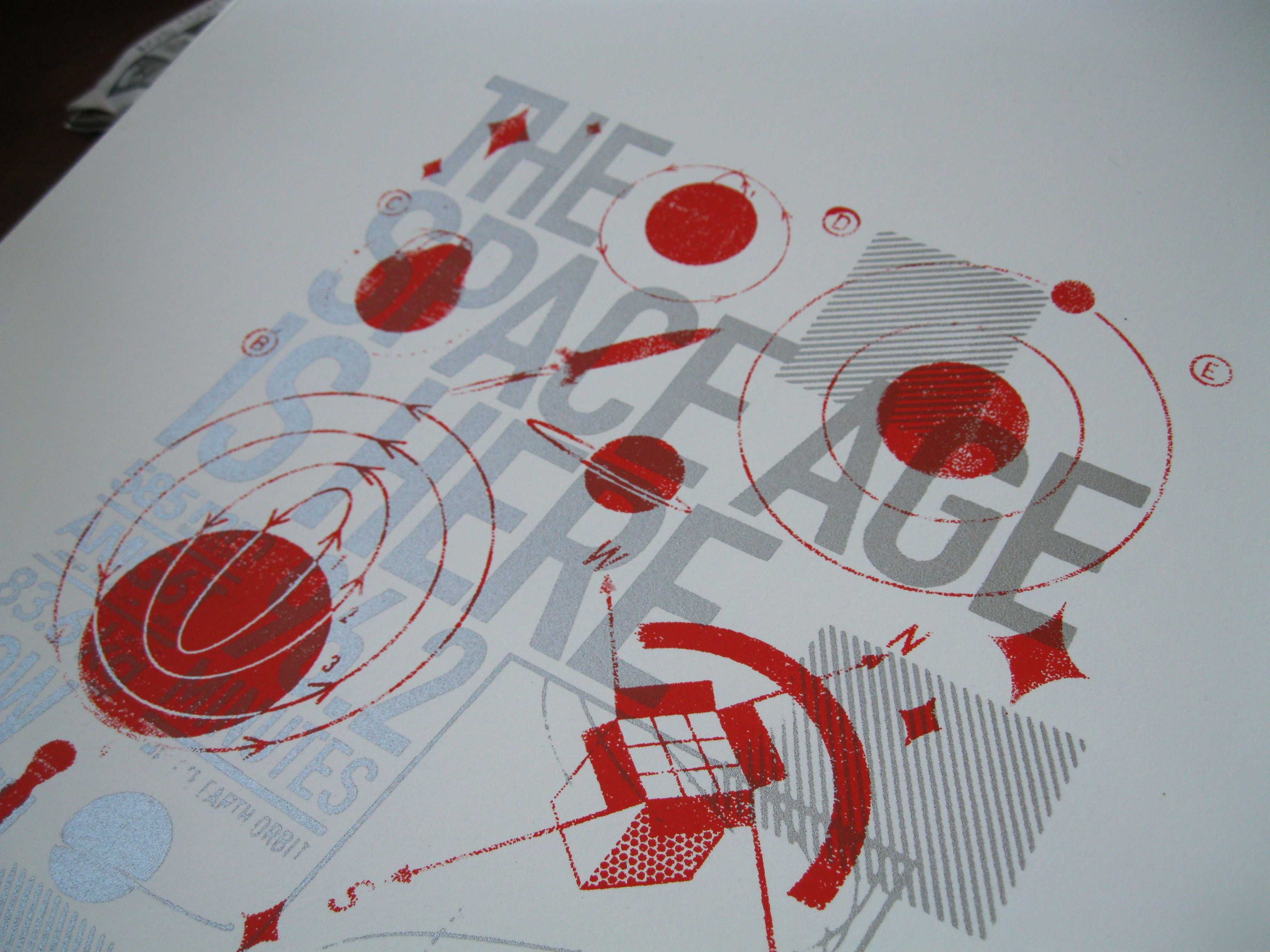 We’d always intended to print posters from our International Sputnik Day project and since the designs were still on the screens it was an easy decision what to print that weekend. With a tub full of shiny new metallic ink and a couple of new recruits to break in (hi Dan and Bec!), we gave those screens hell for a day and managed to squeeze 2 of our 3 designs out.